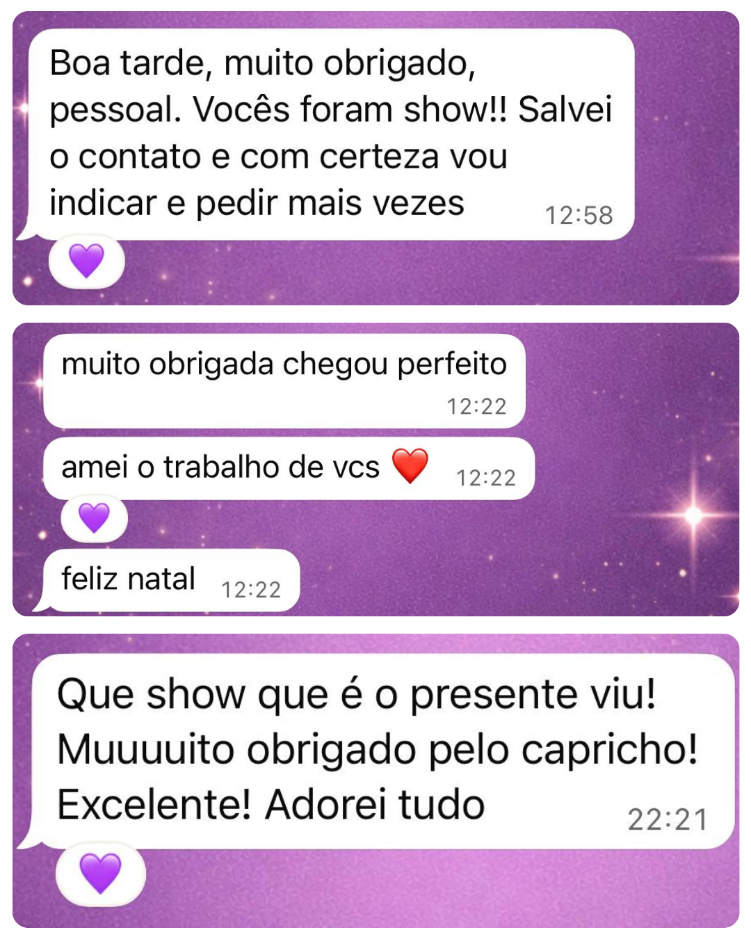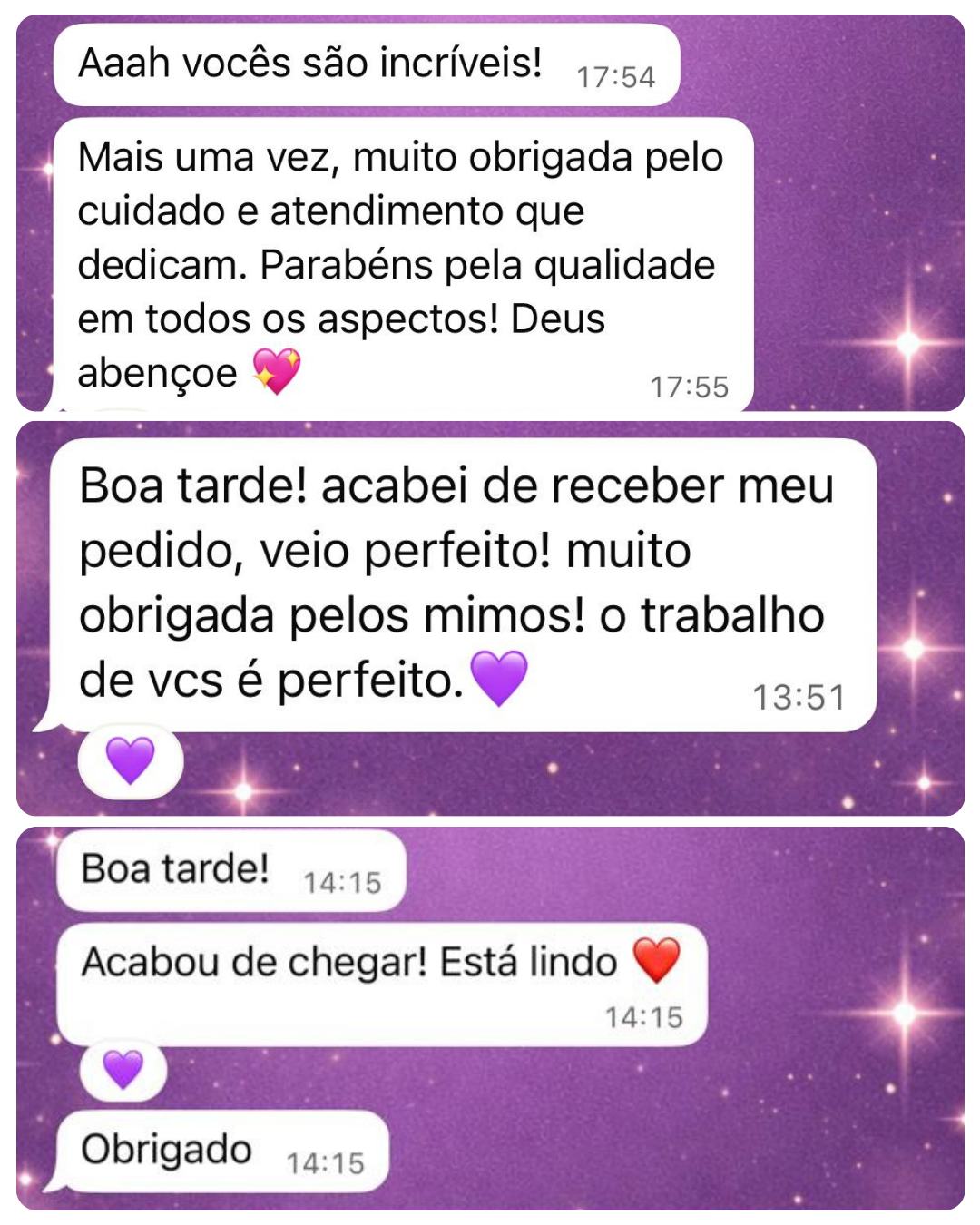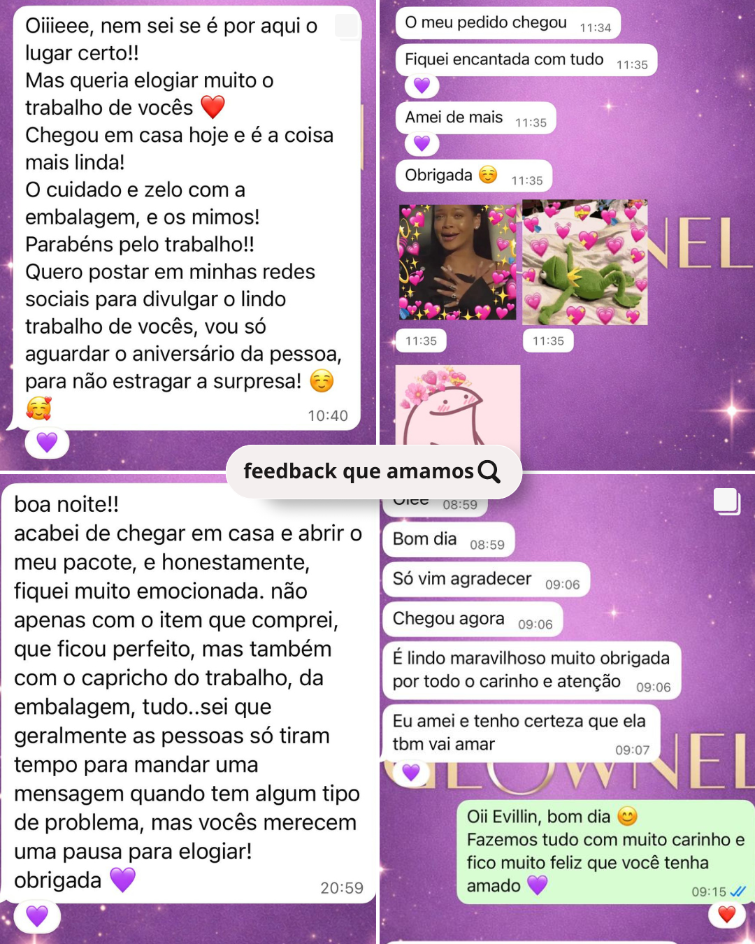 Cada pedido que recebemos, cada caixinha que preparamos é com muito carinho e atenção aos detalhes, buscamos sempre entregar a melhor experiência para nossos clientes. E este mural é um espaço dedicado a vocês que faz parte da Glownel. Cada mensagem que recebemos ficamos muito felizes, são experiências reais que nos mostra que estamos no caminho certo.